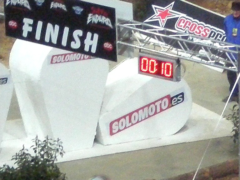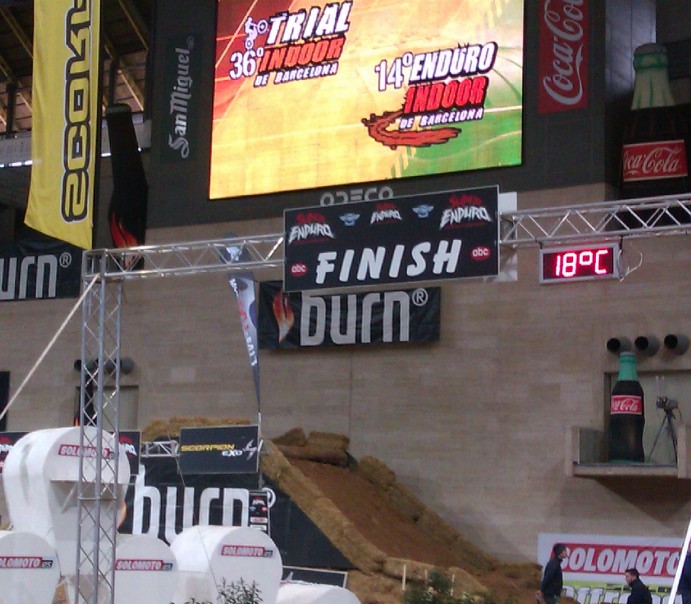 With timer displays of Rousis Systems timed the Trial Enduro Indoor Barcelona 2013. Was used a new model of our products, special for moto & auto races. (Real time / Countdown Clock & Lap Counter with wireless PC control via stand-alone application. Protocol available to control the clock via custom made timekeeping applications).