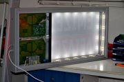 - LED illumination behind the printed surface.