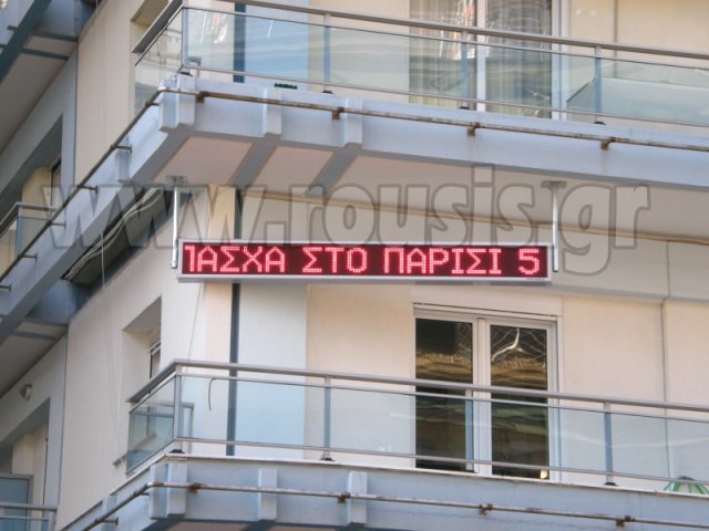 Μεικτή ηλεκτρονική επιγραφή 16 χαρακτήρων στη Μαγνησία Θεσσαλονίκης σε ισόγεια γραφεία.