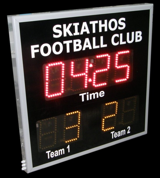 Tabellone segnapunti di alta qualità, mostra il tempo e il punteggio della partita. Con corno a bordo per il segnale acustico, adatto a vari tipi di stadi e sport come calcio, basket, pallavolo, pallanuoto e altro ancora. Con LED di alta qualità e controllo automatico della luminosità, visualizzazione di tempo e temperatura prima e dopo il gioco. Funzionamento facile con tastiera wireless o PC o tablet tramite connessione wireless.Con parte luminoso in alto per il tuo logo o qualsiasi pubblicità sponsor!