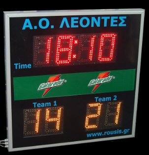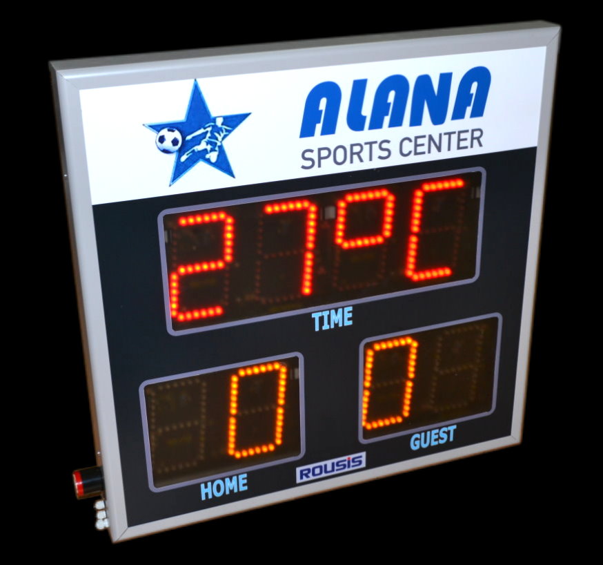 Tabellone segnapunti di alta qualità, mostra il tempo e il punteggio della partita. Con corno a bordo per il segnale acustico, adatto a vari tipi di stadi e sport come calcio, basket, pallavolo, pallanuoto e altro ancora. Con LED di alta qualità e controllo automatico della luminosità, visualizzazione di tempo e temperatura prima e dopo il gioco. Funzionamento facile con tastiera wireless o PC o tablet tramite connessione wireless.Con parte luminoso in alto per il tuo logo o qualsiasi pubblicità sponsor!