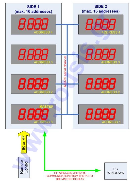 - Facile connessione a una rete di più segnaletica (singola o doppia faccia).